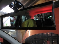 ミラーメディア内蔵のモニターにレーダー探知機の画像に加えリバース連動でバックカメラの映像に切り替わるよう入力させました。 |